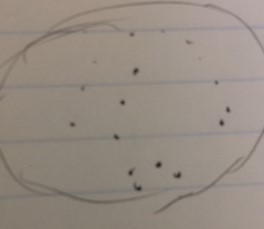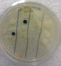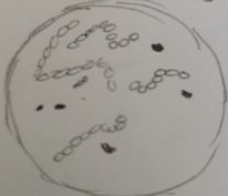 on each plate. The bacteria was then mixed with a drop of water and a circle was drawn underneath the sample