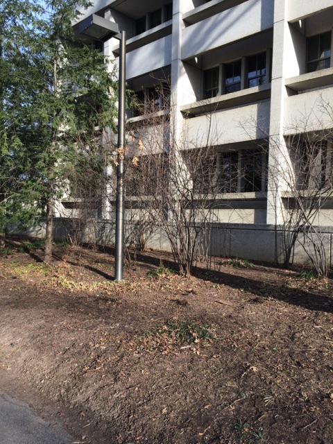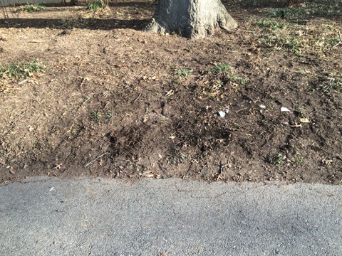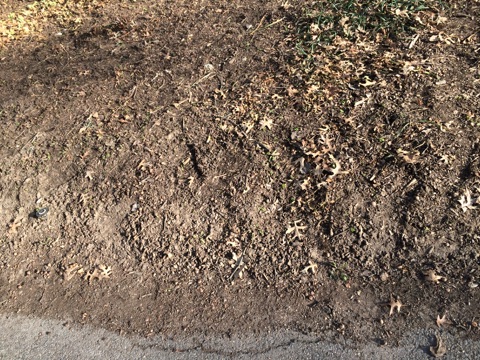wet soil- throughout the transect where ever there was a sprinkler as well along the back wall,
