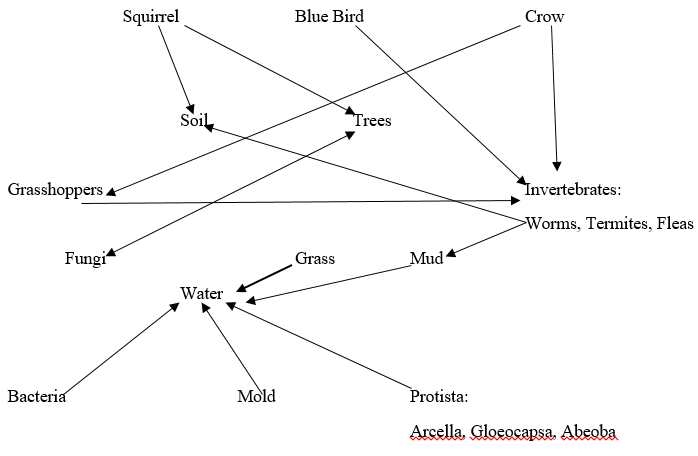 These organisms live together in such a way that they create a community. Meaning they live based on the actions of each other. Some organisms will feed on others while others will be eaten. Some may also help clean up the community in such a way that others can live easier lives. While they can all live together, if there populations were to grow and, or new organisms came to live in the transect, more resources would need to be made available so as to care for every organisms. If this cannot happen, the transect will have reached its carrying capacity, meaning it has reached a point where it can only take care of what already lives in it.