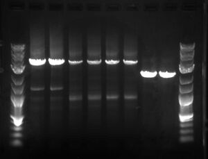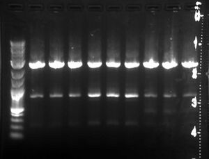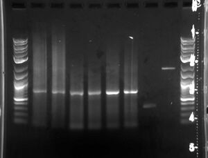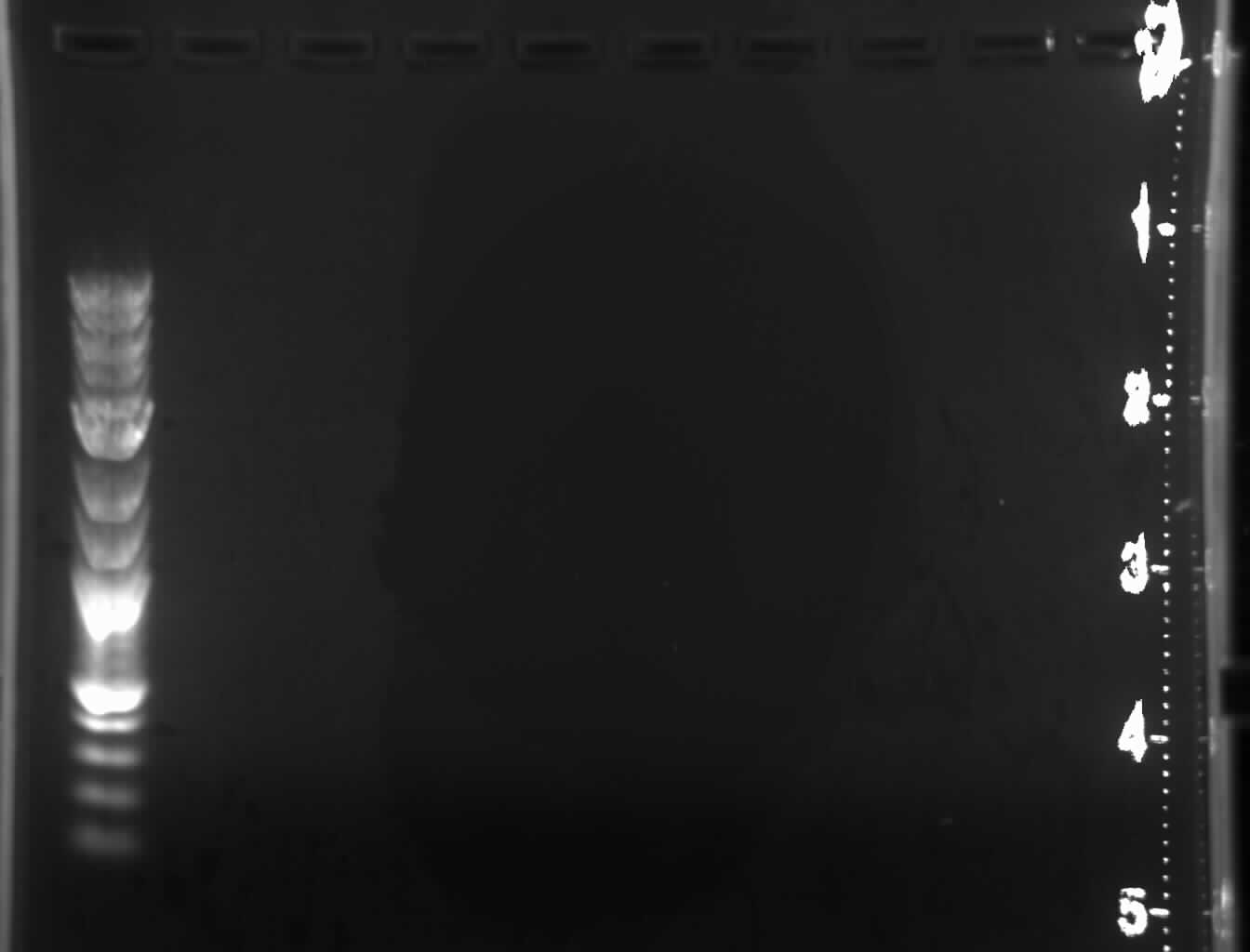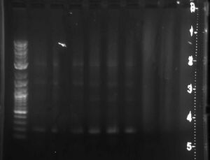 I ran a PCR to attempt to amplify sections 5 through 9 from the assembled product again.