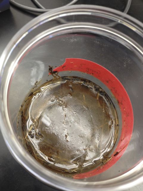 1. Collect the already-prepared 50:50 ethanol/water solutions--one container containing organisms floating on top of the solution, and another containing organisms that drifted to the bottom.