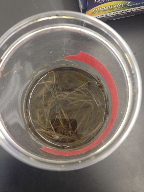 4. We returned to the lab and placed the soil/plant sample in a plastic jar with 500mls of deer park water. The final weight was 11.03 grams.