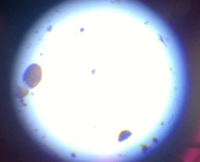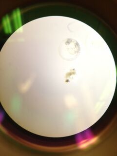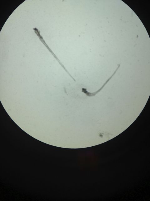 4. We observed the wet mount under the microscope, first observing the plates at 40x objective, and then placing a drop of oil over the lens as we moved to 100x oil objective lens.