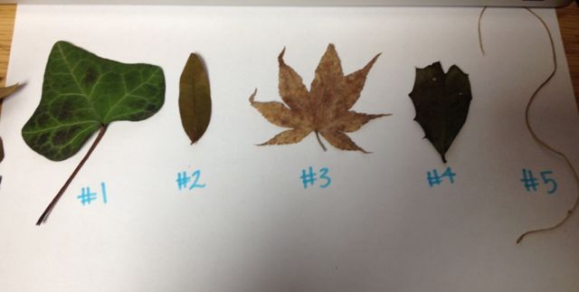 3. We filled another bag with a sample of five different plant leaves that had fallen to the ground