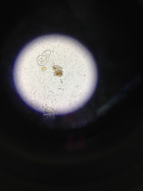 1. I prepared a wet mount of the sample containing the protists, making sure to insert the pipette towards the middle of the sample where more protists were more likely to be.