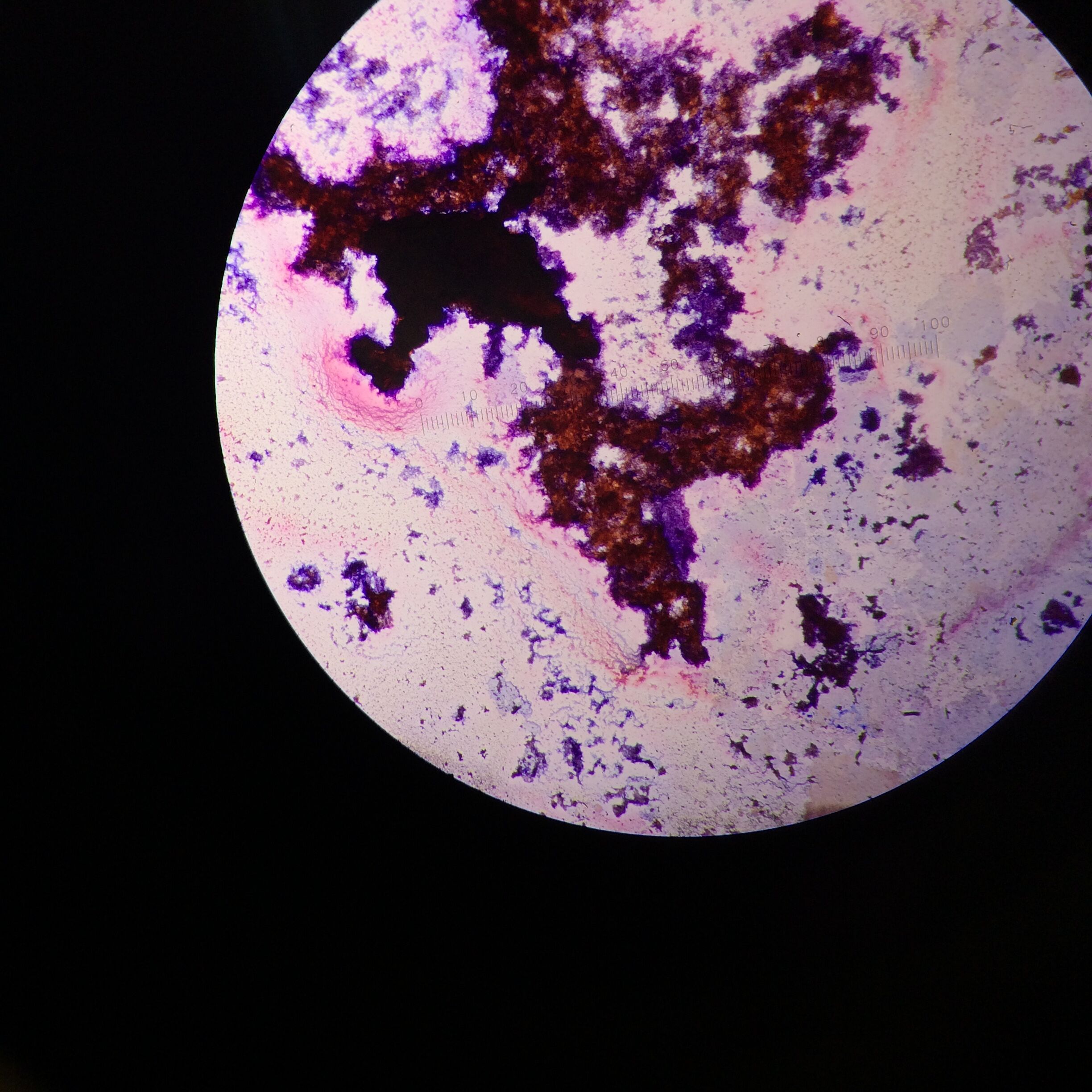 -A loop was sterilized over a flame and then used to gather a sample of the bacteria which was then placed on a slide and mixed with water. It was heat fixed by being passed over a flame and then placed in the staining tray. It was first washed with crystal violet for one minute, then rinsed off with water. Then the Gram's iodine mordant was added next for one minute and washed off with water. Finally, a 95% alcohol solution was used to remove the color and put on slide for around 20 seconds. It was washed off with water one final time and the excess liquid was blotted and then the slide was examined under a microscope.