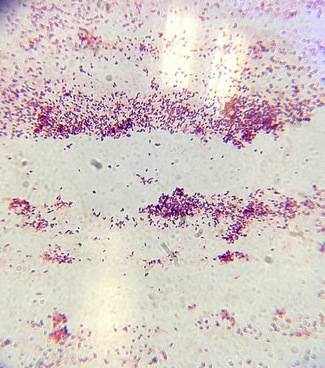 f.  Cover the smear with safranin for 20-30 seconds, rinse, and blot excess water