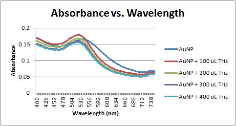 ObjectiveUsing previous experiments as a guide, another AuNP synthesis was run with the goal of determining what the AuNP fibers are stable in and to prevent BSA protein unfolding. ProcedureTwo solutions of AuNP were created. Solution 1: