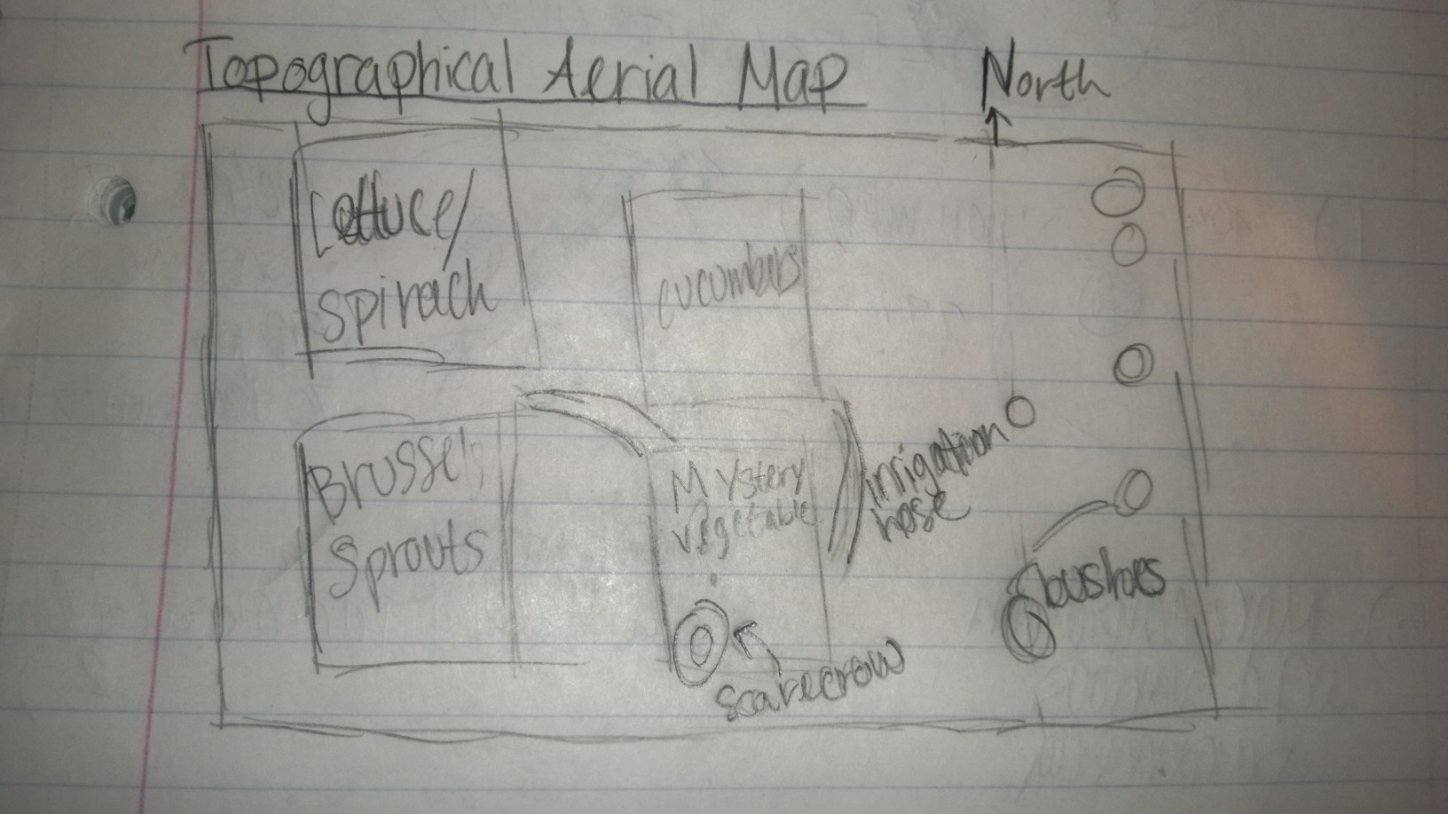 Five biotic elements: Cucumber Lettuce Brussel Sprouts Spinach Bushes
