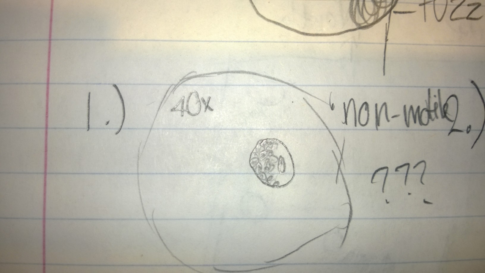 Sample 1 contained a non-motile species that I was unable to identify with the dichotomous key. It had some green parts, leading me to believe it was a species that performed photosynthesis. It was about 50 micrometers.