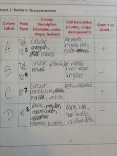 The following table, Table 1, shows the results from the serial dilution performed last lab.