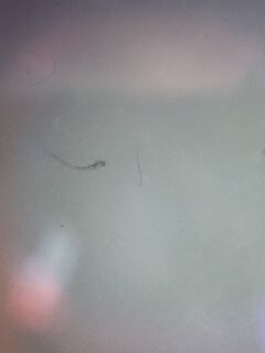 Seven of the control embryos have hatched at this stage of development and are still too small to obtain detailed measurements. The length of the hatched fish is at .3 centimeters and the width is .05 centimeters with the remaining embryos still at .0009 centimeters. Seven of the treated fish are no longer living and have appeared to disintegrate within their wells because there are no remnants, no skeleton, or any remaining fragments of the Zebrafish where there once were two days prior. A photograph of one of the remaining Zebrafish is pictured below with the measurement as follows; inner eye distance .03 centimeters, girth .05 centimeters, eye diameter .04 centimeters, total body length .5 cm, and the tail length was 1 centimeter.