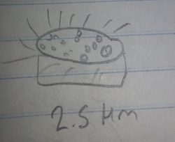 Bottom Organism 3: This organism was gray, motile, and about 3.25 micometers long. From its features it was determined to be an Ameoba, a nonphotosythesizing protozoa.
