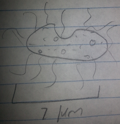Bottom Organism 1: This organisms was gray, motile, and about 2.5micrometers long. From its features it was determined to be a Colpidium, a nonphotosynthesizing protozoa.