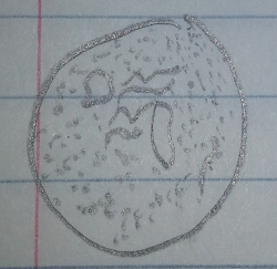 Orange Colony, 10^(-5) Tetracycline Free Plate: This orange colony was circular, convex, and smooth. On the first microscopic observation the bacteria appeared very, very small and squished together. There was no movement noticed but a few squiggle shaped objects were observed among the small bacteria. The bacteria was guessed to be two separate bacteria species, a cocci and a spirilum. After the gram-stain test it was found that the bacteria was spherical and pink, making it gram negative. The odd squiggles noticed in the pre-gram stain wash also disappeared. From the evidence gathered in the gram stain observation it was determined that the bacteria was a cocci, possibly a staphylococcus.