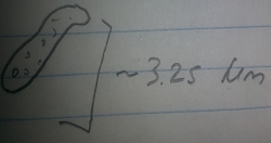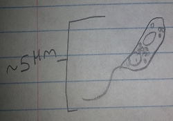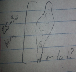 Example Organism 2: The first organism was bout 5 micometers long. It was determined to be a Euglena after consulting the Dichotomous Key.