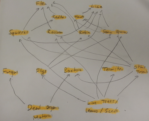 Five invertebrates who might inhabit the transect include the song sparrow, robins, raccoon, eastern gray squirrels, and red tail hawks. While none of these animals were directly observed at the transect they have been seen around campus or are known to live within Washington DC.