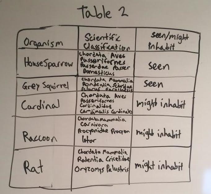 Methods We collected our invertebrates through a Berlese funnel. We then observed the invertebrates with the naked eye and used a dichotomous key to classify. We observed the vertebrates in our transect by hand.