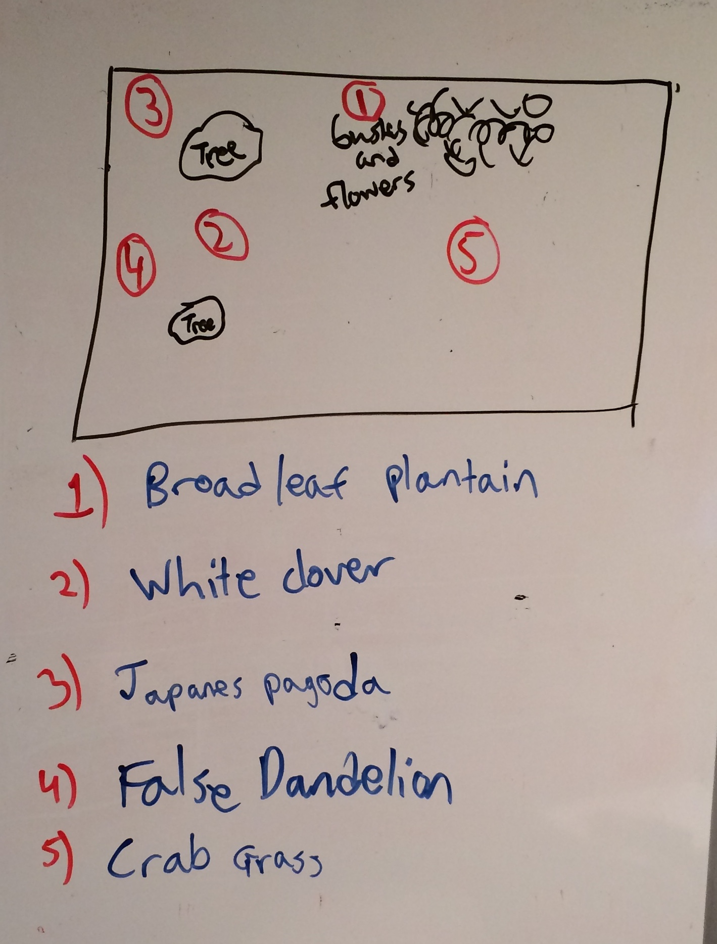 | White Clover | 2 | Three leaf structure with white flowers | Dicot | flowers and stomata | Flowers and pollen |