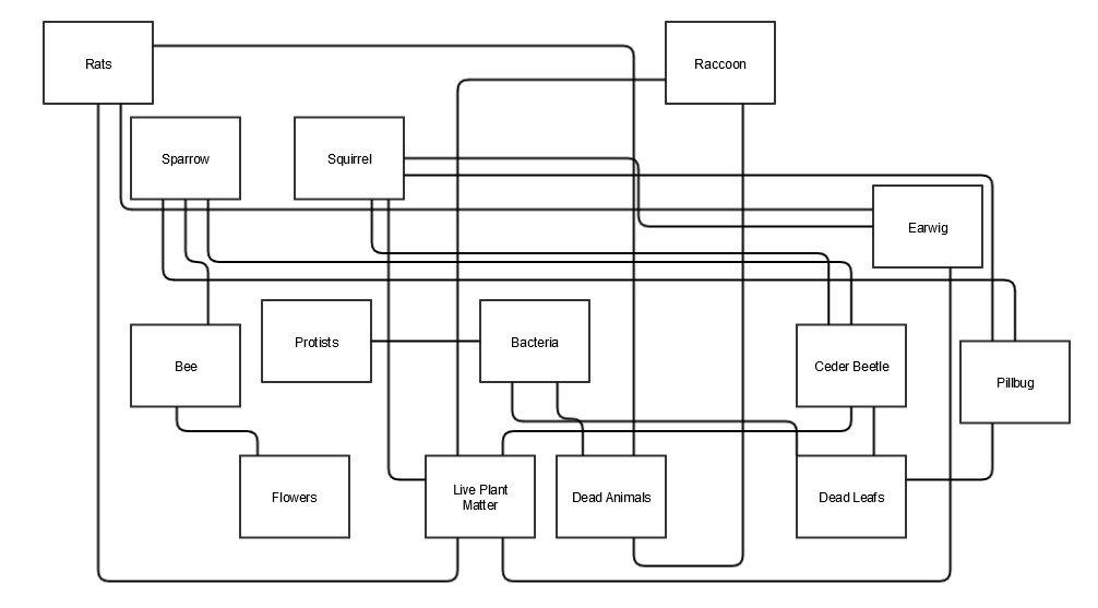 Discussion Although there was not a lot of diversity in our transect, there community had a lot of life. The foodweb above illustrates the inter-connectivity of our transect.