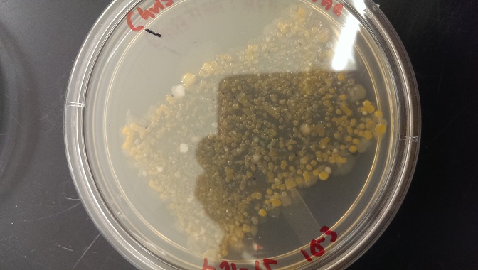 Discussion- The bacterial samples were taken from the T and N 1x10E-3 petri dishes. Although the two samples appeared to be different in lab, upon closer inspection compared to known colonies of Chryseobacterium (microbewiki, 2015) it appears both were in fact colonies of that bacterial family and they just looked slightly different. Mistakes were made in the observation of the different slides. For one sample the bacteria were correctly identified as gram negative, for the other they were mistaken for gram positive, likely due to the staining of the slide itself rather than the bacteria. The bacteria were mistaken for cocci bacteria in both samples when they were in realty rod shaped. Based on this I would say the match is actually correct for both samples but some observation errors were made by those recording the shape and coloring of the samples under the microscope.