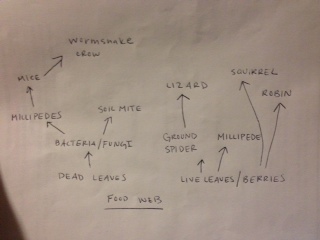 Objective: The objective of this experiment is to understand the importance of invertebrates and learn how simple systems (including specialized cells and overall body plan) evolved into more complex systems. In this experiment, we observed the three types of worms with different body structures/cross-sections, in terms of their ectoderm, mesoderm, and endoderm. Then the invertebrates that were exposed using the Berlese funnel and that are therefore present in the transect were identified. All of the information acquired during the past weeks can be used to hypothesize which types of vertebrates are most likely coming in contact with the transect/ecosystem, and also construct a food web based on these organisms. The hypothesis of the lab is that the invertebrates found in the transect will be mites and spiders, especially since spiders are the organisms that are most present in leaf litter, and there was also soil in our sample.