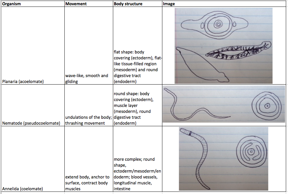 Raw Data: Table 1: Acoelomates, Pseudocoelomates, and Coelomates