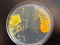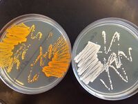 NOTE: there seems to be a mix up between 128 and 179 from the picture above and what I streaked out in the MIT lab. Strain "128" is the one that's more orange than yellow and that gives off white, yellow and red colonies and that's trp-. This strain was stored in my lab collection as NY458.