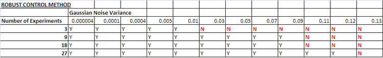 Observation: For a low number of repeats (N=3) the algorithm could recover the correct boolean structure up to a gaussian noise variance=0.03 approximately. This tolerance to noise increases with increasing numbers of repeats. At N=27, the algorithm breaks down at a Gaussian noise variance of approximately 0.12. In practice this signal to noise ratio could be improved with higher numbers of repeats. Also, illustrated below in Table 1: