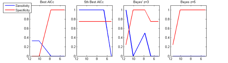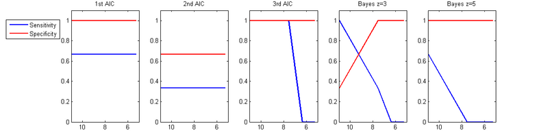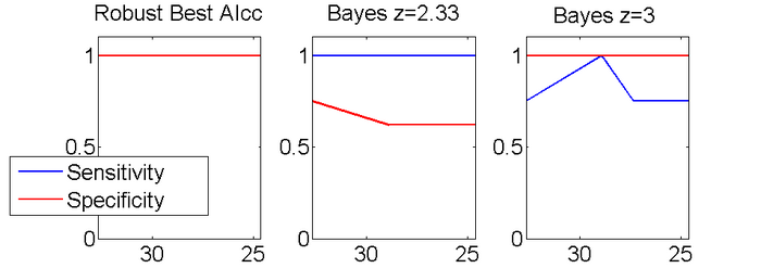 - For the robust control method we plot the sensitivity and specificity of the best three AICc scores