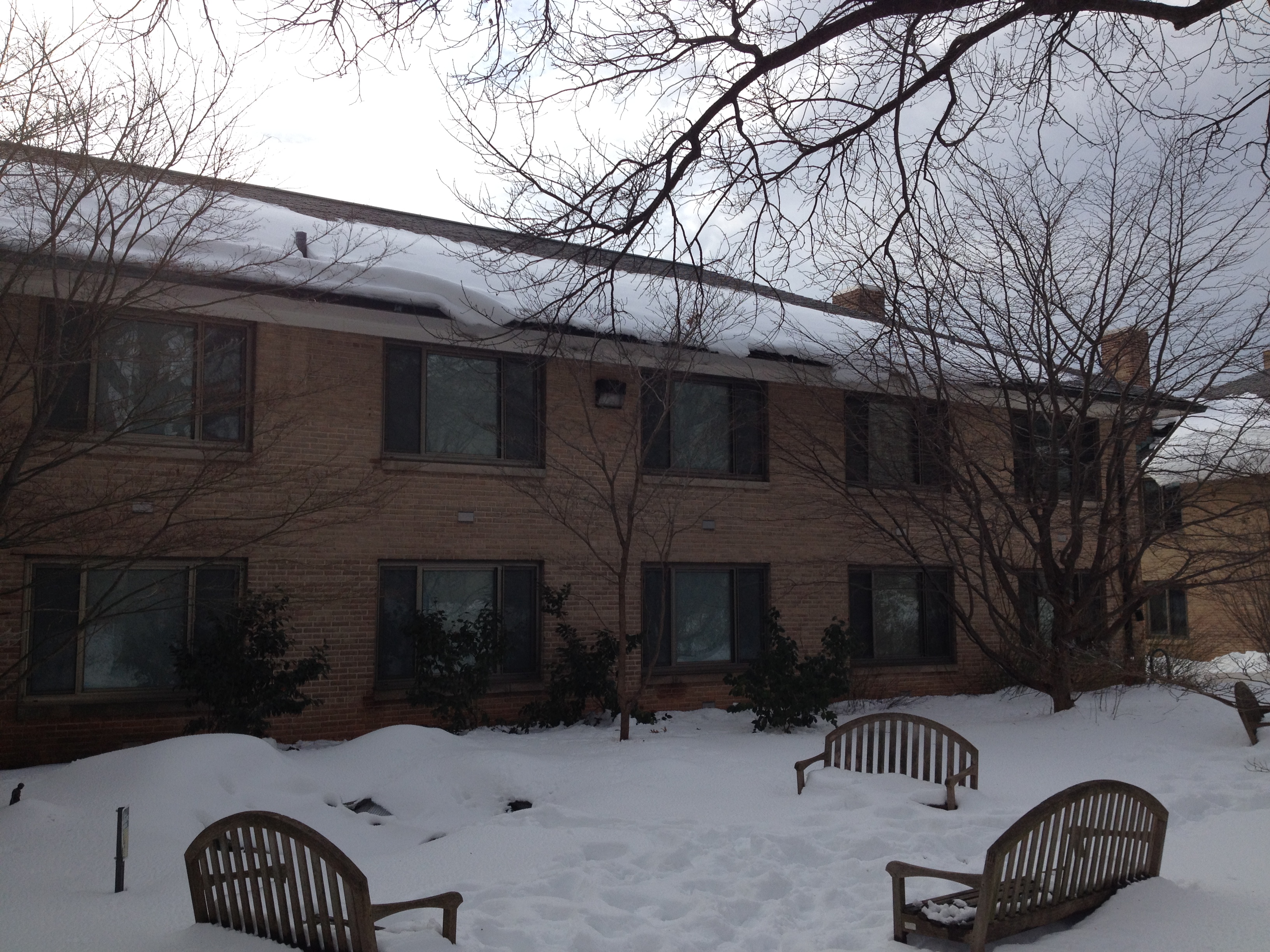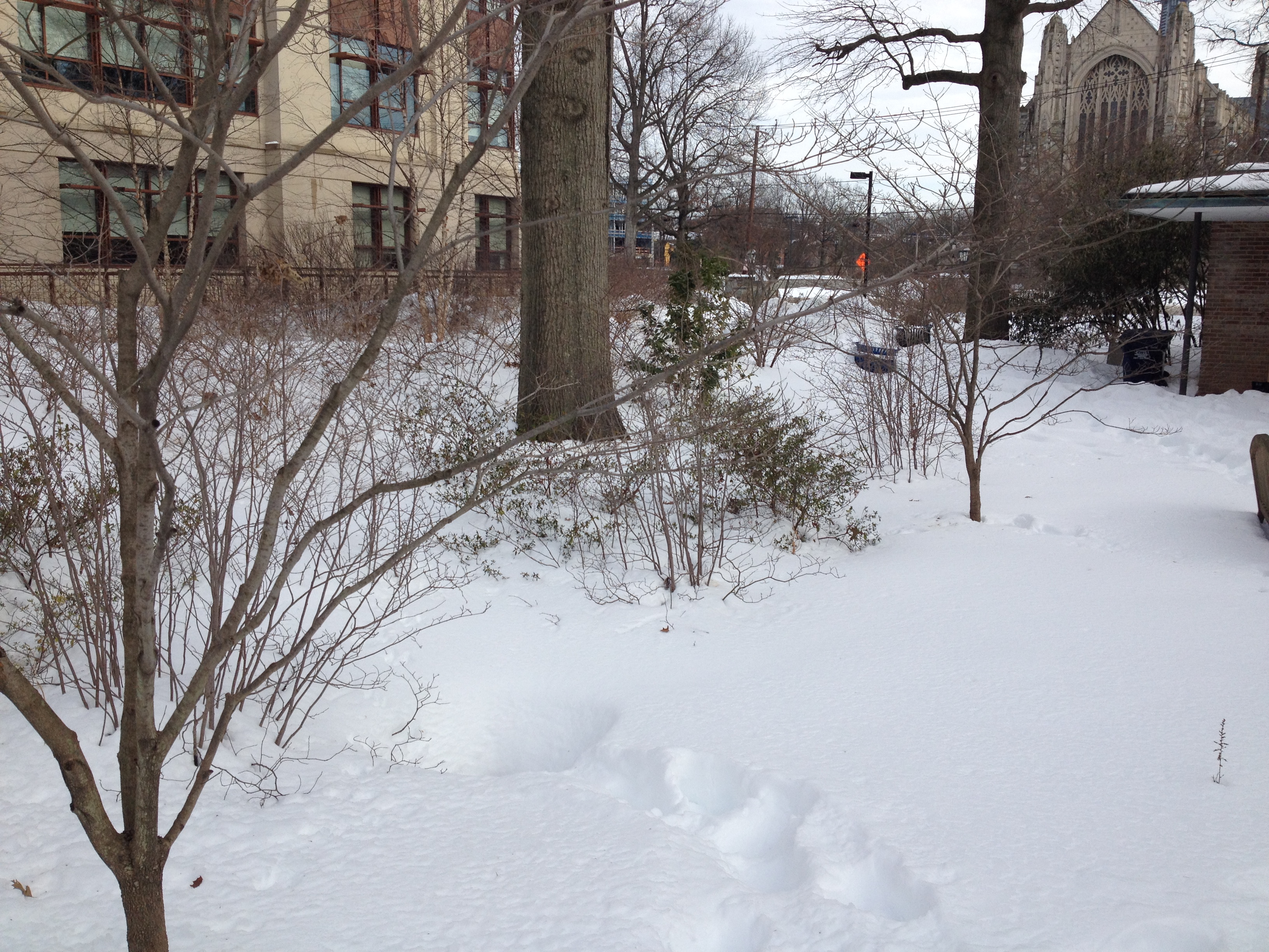 Trashcans Statues Snow Benches Roper Building Artificial Light Bird Feeder Drain Pond Rocks Stone path