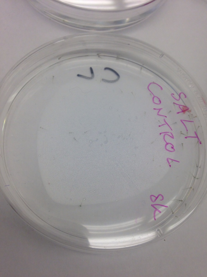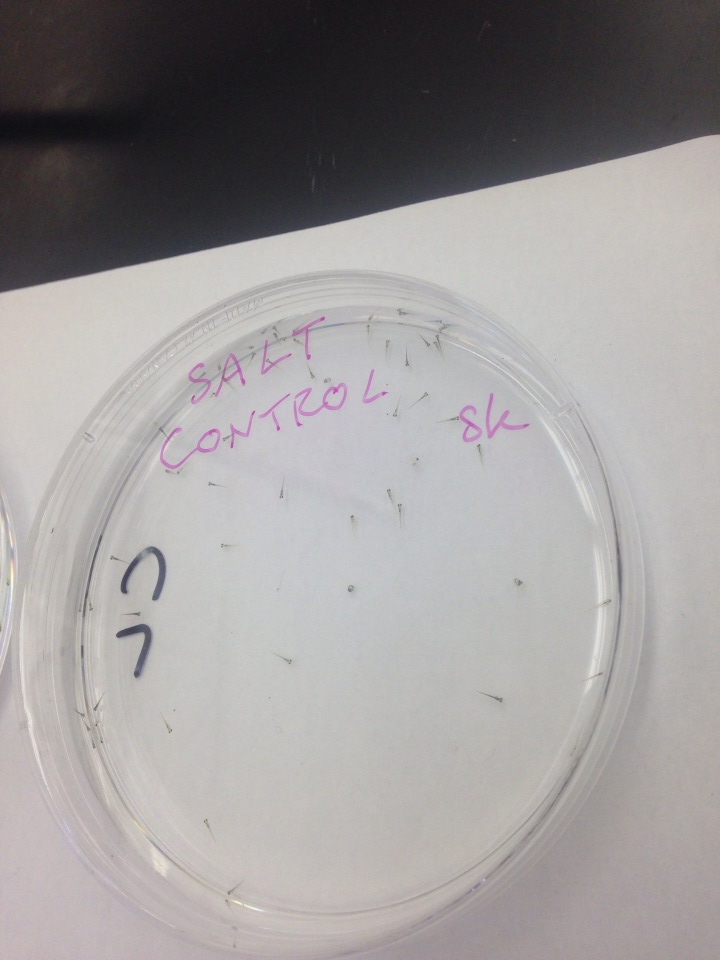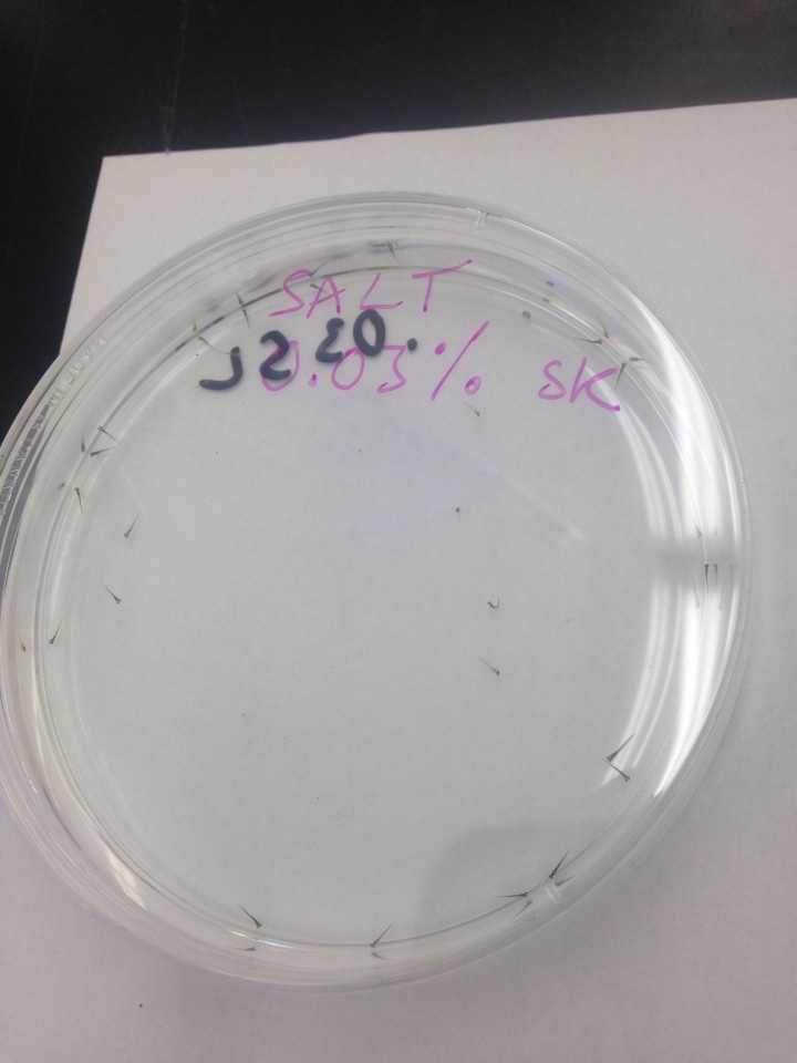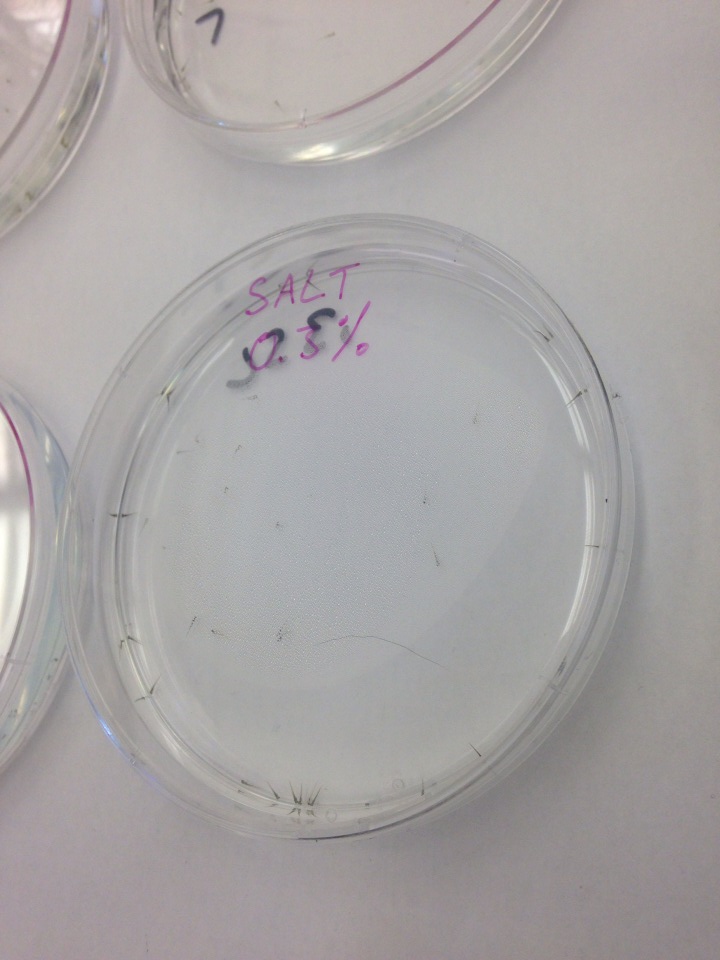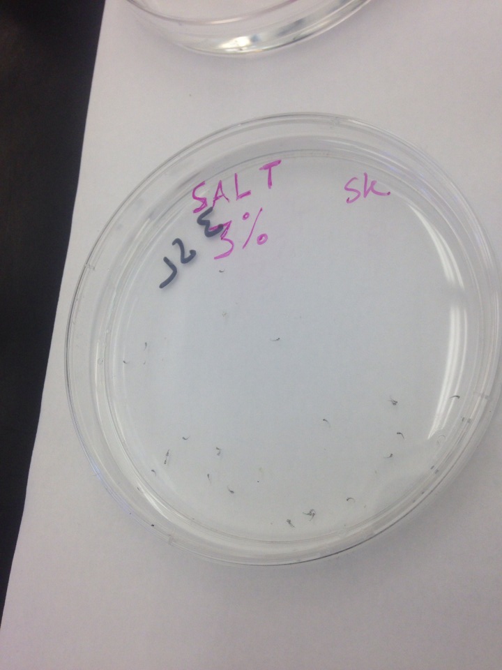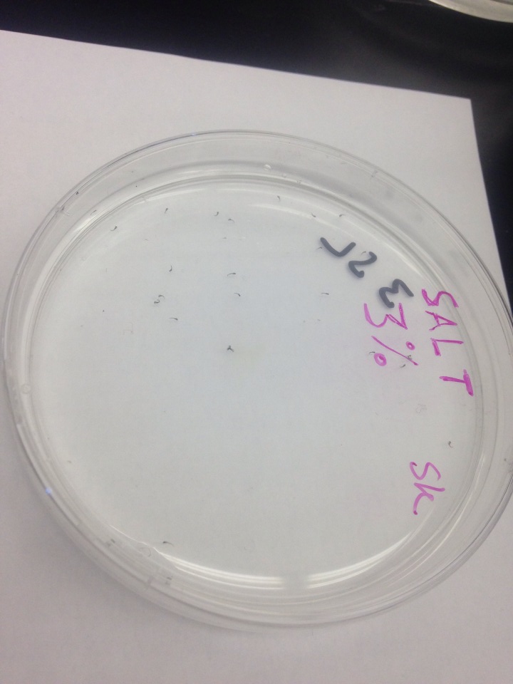 Those who perform this experiment in the future should provide paramecium as food on day 7. They should control the temperature of the lab, as warmer days in the lab lead to increased activity and consumption of the yolk sac. They might want to consider beginning the experiment at an earlier stage of development, before hours 40-42. They also may want to consider a sample group with a salinity around 1% and 2%, to get a better idea of what salinity level begins to affect cell growth and embryo development.