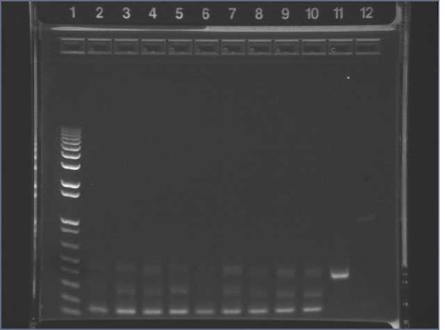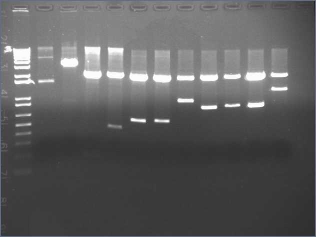 Lane 11: E0241, miniprep from culture #1, XbaI/PstI digested
