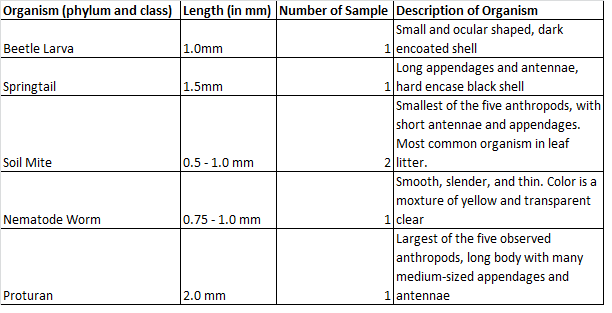Data and Observation (Procedure III: Analyzing the Invertebrates Collected with the Berlese Funnel)