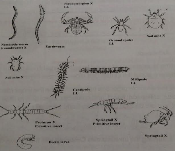 • Various organisms from each of the major classes: ararchnida, diplopoda, chilopoda, insect, and crustacea