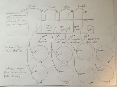 Purpose: Observe and quantify organism in serial dilution grown on nutrient agar and nutrient agar with tetracycline.