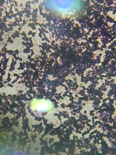 Blot excess water with Kim wipes, air dry and observe under the microscope.