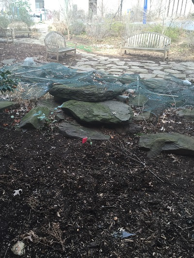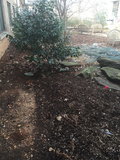 Topography: The transect had Cornus florida commonly called flowering dogwood, Parrotia persica treesome trees and some budding flowers as well. The soil was moist and covered mostly with fallen leaves. The sides of the pond was riprapped with rocks to protect it from wind, wave action and erosion. There were grass grown around the pond probably to prevent erosion.