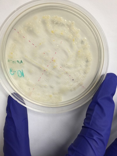 | Dilution | Agar type | # Colonies on plate | Conversion factor | Colonies/ml |