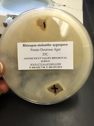 Fungi sporangia are spore producing fungi. This is where meiosis and spore production occurs. The spores undergo mitosis and divide to form multicellular haploid gametophyte. The sample is a fungi because it has a large mass of hyphae filaments (mycelium) growing on the surface of the potato dextrose agar plate. There were some black bean-like or globelike structures that was suggestive of sporangia. The fungi belongs to a group of multicellular mold called zygosporagia (Zygomycetes)