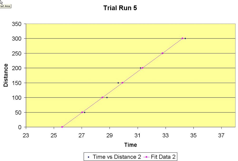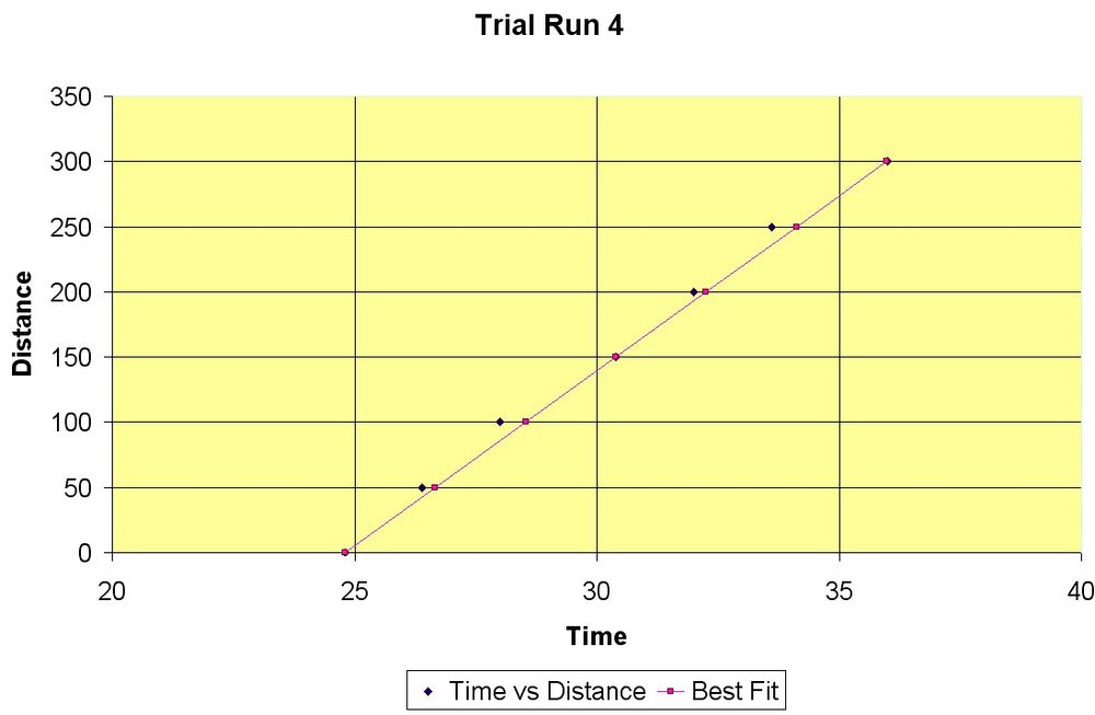 for our fourth and most accurate measurement by using Excel to plot the change in distances verse the change in times. The speed of light is the slope of these plots.