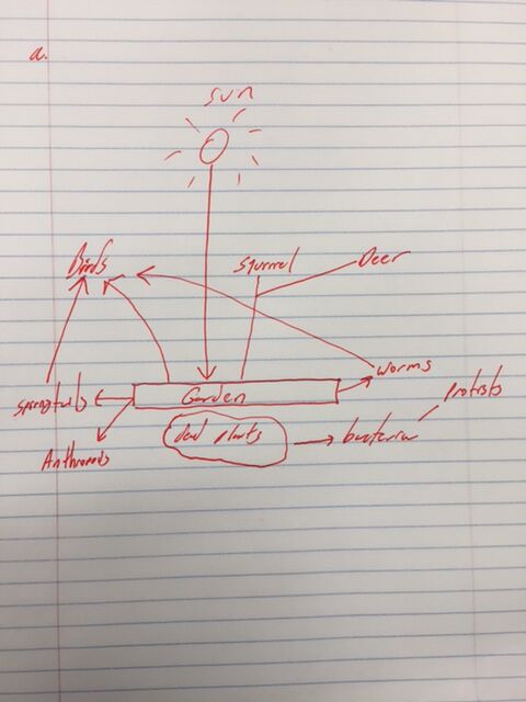 The fact that we had a farm land for our transect means that we would attract many organisms since it is a great source for food. The biotic characteristics such as the vegetables growing are very beneficial to the organisms such as the deer and the squirrel. The abiotics characteristics such as the fertile soil are beneficial to the earthworm because it supplies shelter to them. In addition, the cardinals can also benefit from the soil since it’s a good platform for seeds that they can feed of. The dog was there with its owner but it could use many of the transects resources such as soil to dig around and wood chips to play with.