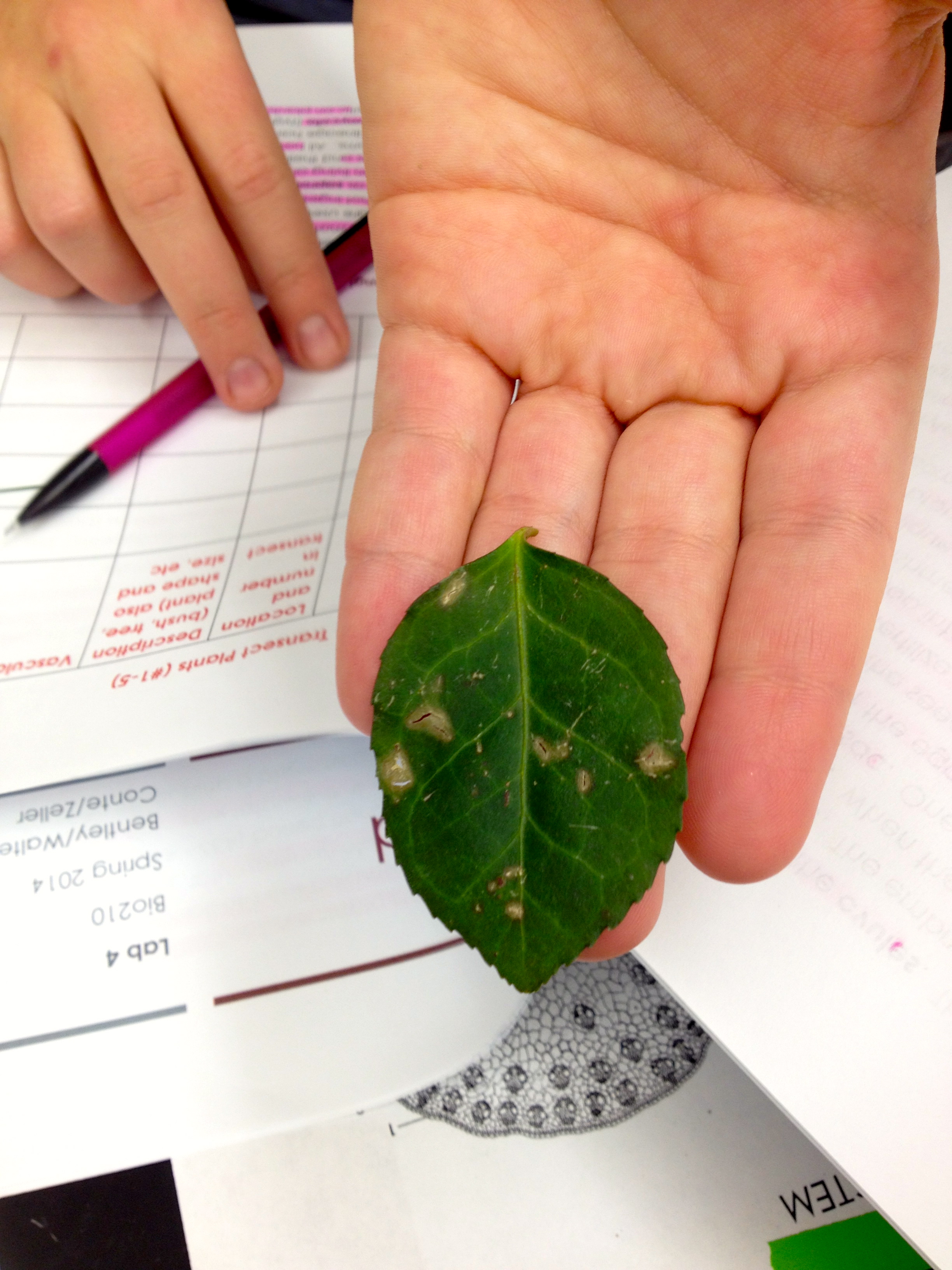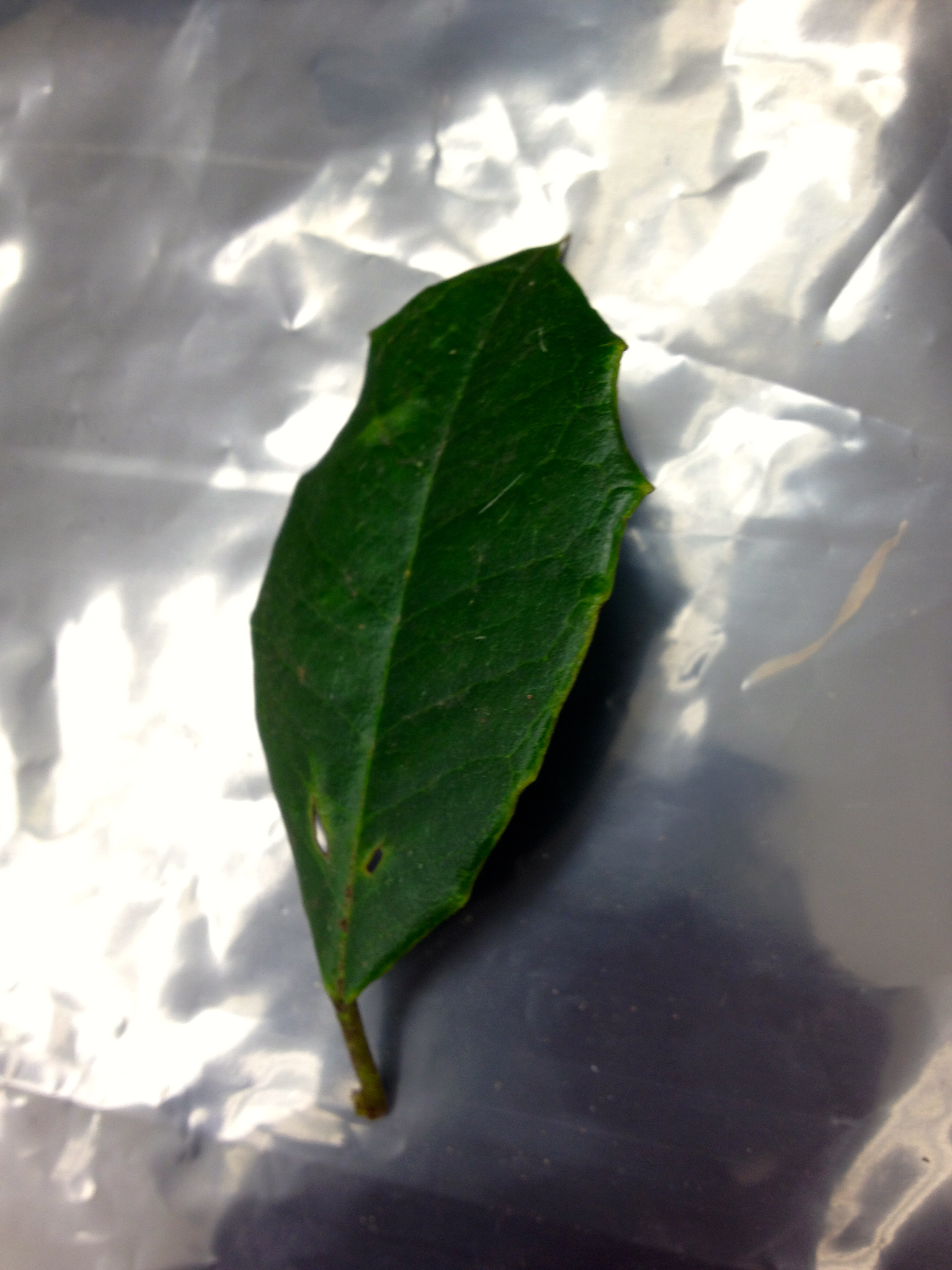 Methods & Procedure: This lab began with a trek to our transect by the seminary and collecting five different leaves for examination. We also collected a larger bag of the top soil and leaf litter for usage in our invertebrate lab next week.