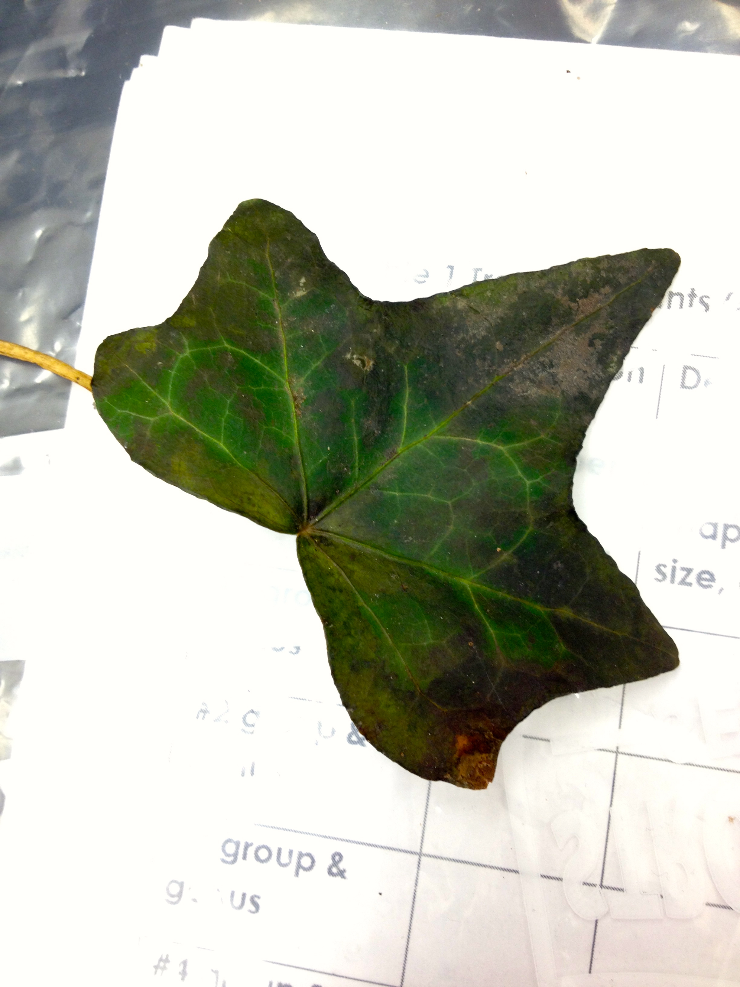 | 2 | Green Leaf 1 | Ivy on the ground | Dicot: xylem and phloem | Evenly distributed veins | No Spore evidence - Angiosperm |