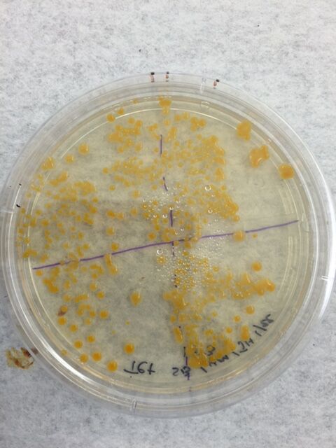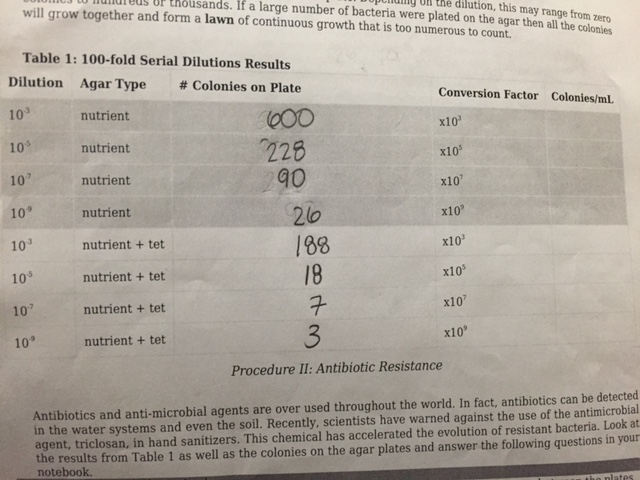 - There was a difference in the colony between the plates with versus without antibiotic. The plates with agar created larger dots and were more spread out. This indicates that the tetracycline leads to bacteria clusters that are held more tightly together and smaller size of the bacteria