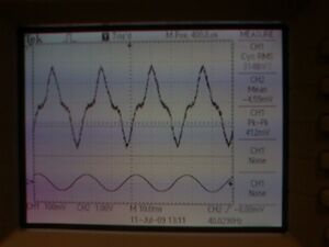 same bead, same power. sine wave 20 Hz, 400 mV amplitude. Looking at X on scope.