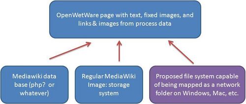 I don't know the technical details or feasibility. What I am imagining is OWW users being able to map a network folder (e.g. an "O:\" drive) using their openwetware username (or related) and password. Users would be able to create but not change or delete data.