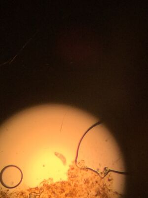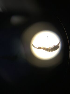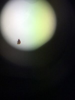 Since we were using a dissecting microscope, it was a bit harder at first to see clearly our specimens. Once we figured out how to properly use the microscope, we took our tube and poured the liquid out into a few petri dishes. We looked around for specimens floating and once we located one, transferred it to another petri dish so we could focus on it. Each time we found a different specimen and these are listed below in the images.