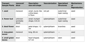 To take a closer look at the seeds we brought back from our transect, we dissected them to find out if they were monocot or dicot. A table of results is below.