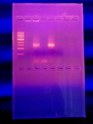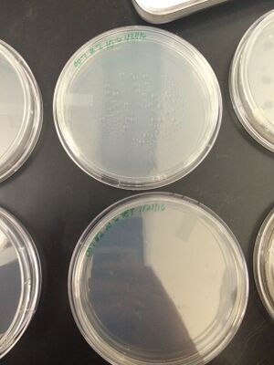 To do this, we added 20μL of primer/water mixture to the labeled PCR tube and then shook the tube to dissolve the PCR bead. Then we took a small sample from the agar plate with a toothpick and mixed it around in the tube. The next week we ran them through the agarose gel to determine the PCR results.